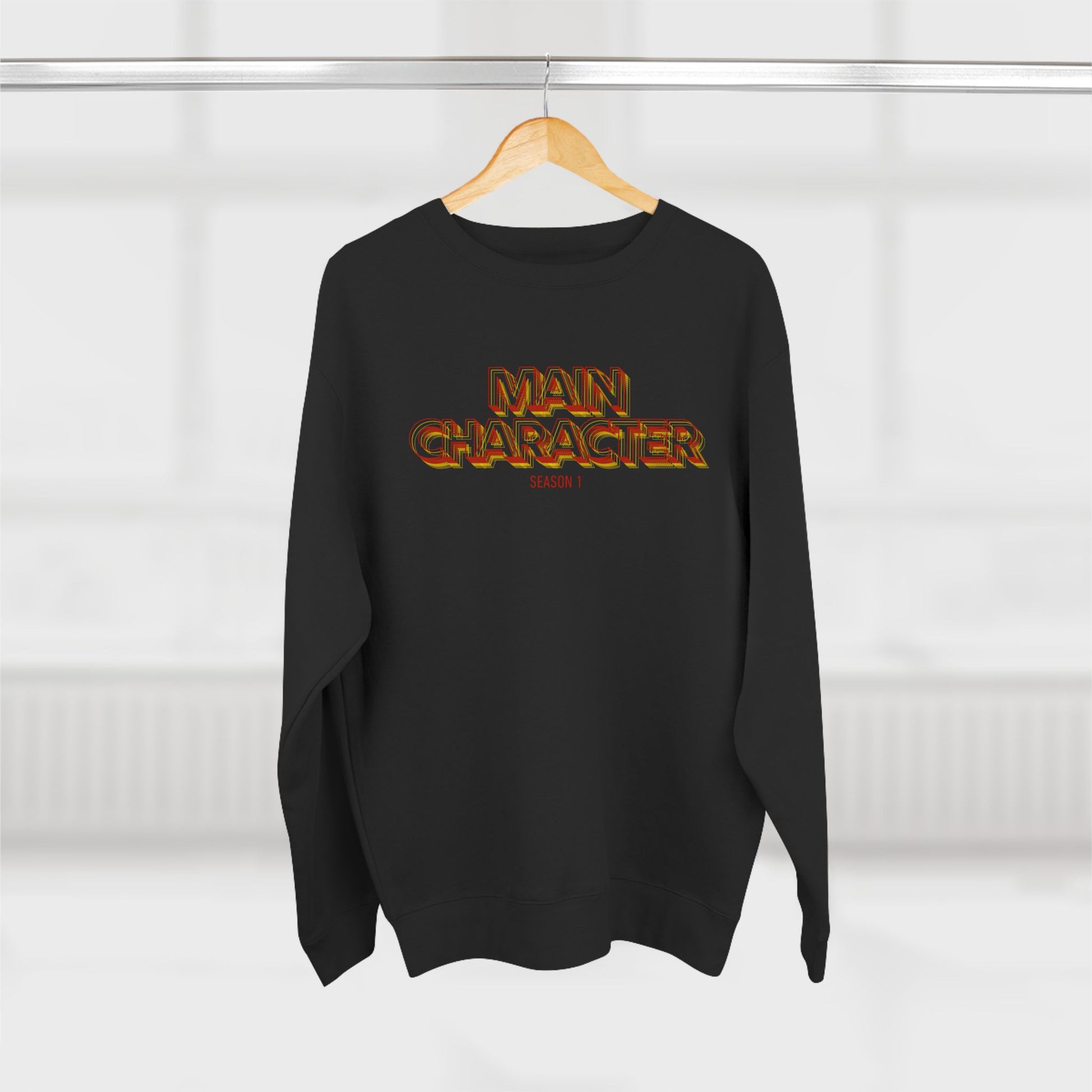 Main Character Crewneck Sweatshirt — Bold Retro Flame Graphic
